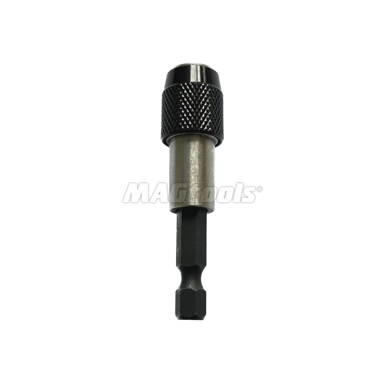 Держатель бит автоматический 60 мм для шуруповёрта обеспечивает надежную фиксацию насадки в инструменте. Актуален при работе в труднодоступных местах. Выполняется из прочной стали, которая приводит к отличной прочности изделия и защищает от коррозии.