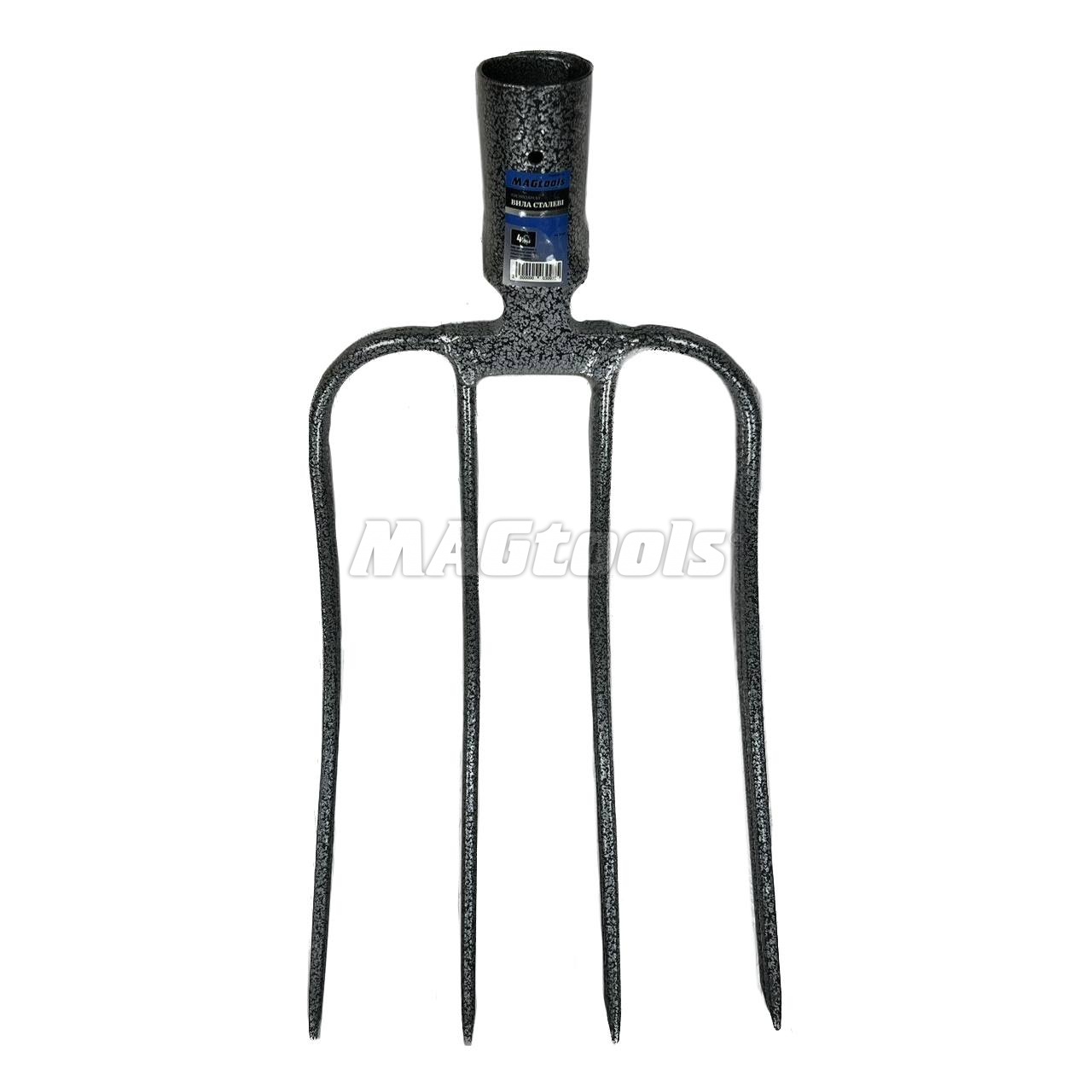 Вилы стальные "хозяйственные" 4 зуба (улучшенного качества). Вилы для культивирования грунта с четырьмя острыми зубцами, изготовлены из прочной стали для обеспечения прочности и длительности использования. Этот инструмент помогает в работе с грунтом, разрыхляет его и подготавливает для посева или посадки. Вилы стальные выдерживают большие нагрузки и отличаются высокой прочностью.