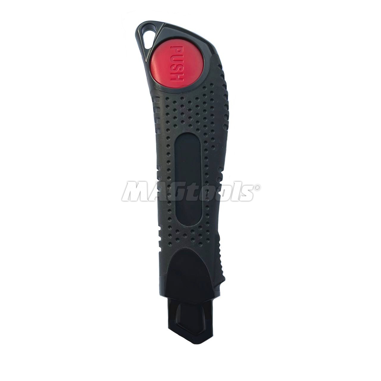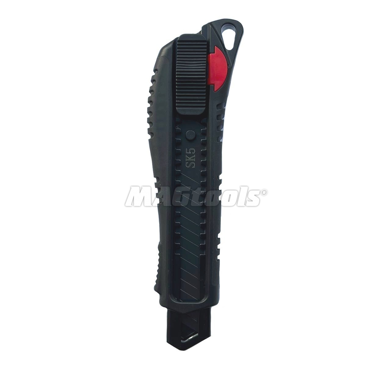 Нож черный SK-5 с автоматическим фиксатором используется для резки обоев, плотной бумаги, картона и других неплотных материалов. Лезвие черное каленое выдвигается с помощью фиксатора auto lock по железным направляющим. Нож идеально подойдет для отделочных и малярных работ. Инструмент имеет удобную форму, выдвижной корпус и эргономичный дизайн, который позволяет с легкостью разрезать материалы.