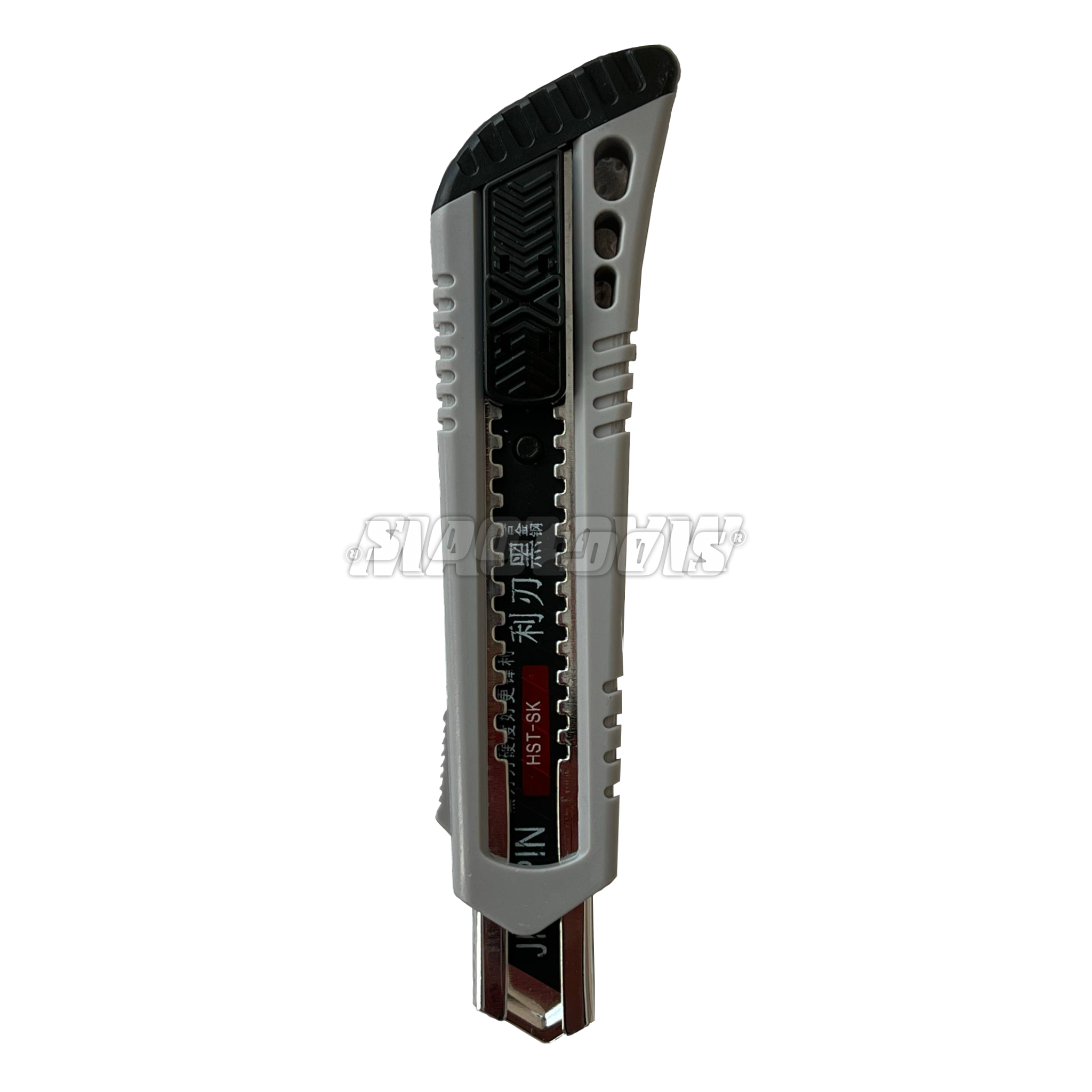 Нож с каленым лезвием SK-3 с автоматическим фиксатором используется для резки обоев, плотной бумаги, картона и других неплотных материалов. Лезвие черное каленое выдвигается с помощью фиксатора auto lock по железным направляющим. Нож идеально подойдет для отделочных и малярных работ. Инструмент имеет удобную форму, выдвижной корпус и эргономичный дизайн, который позволяет с легкостью разрезать материалы.