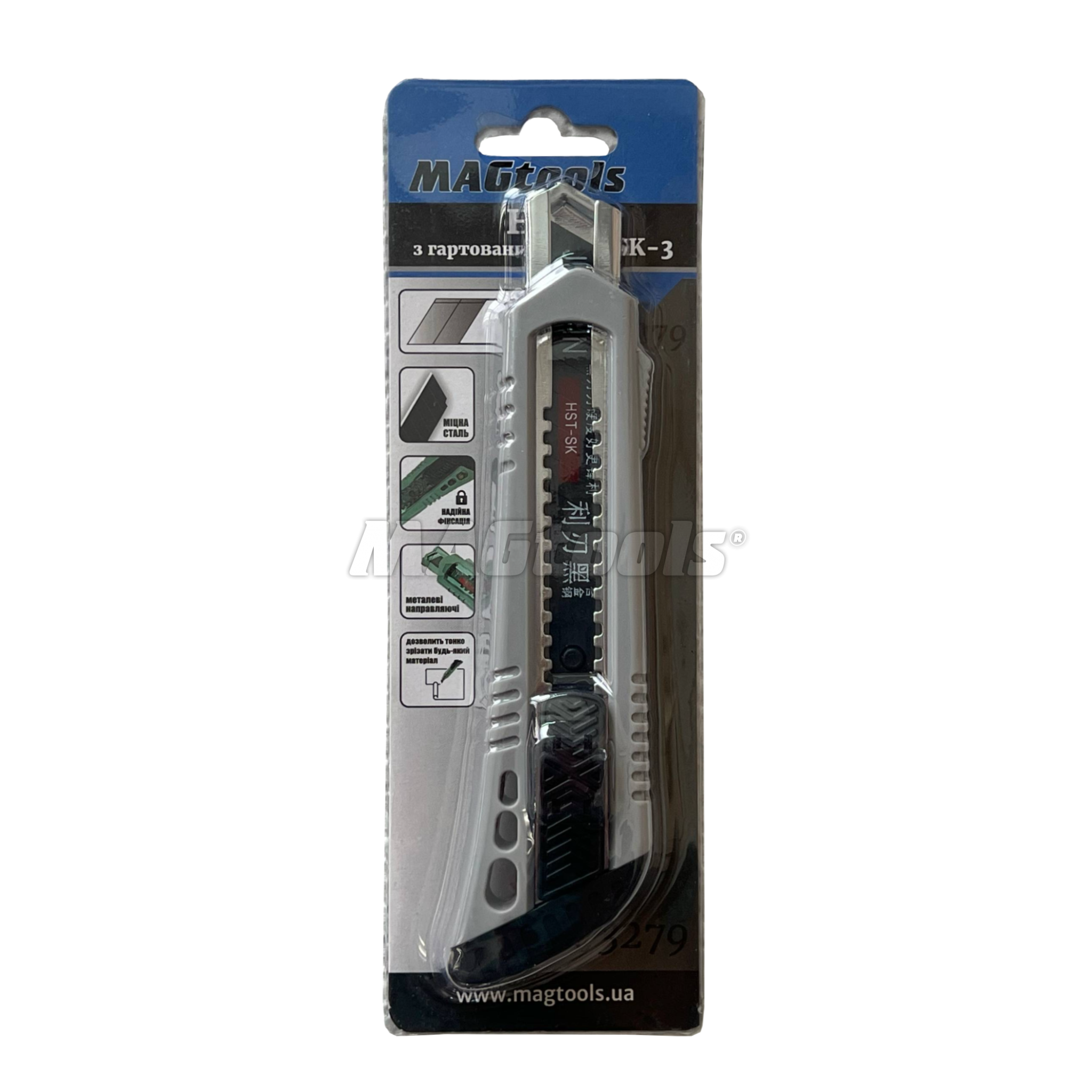 Нож с каленым лезвием SK-3 с автоматическим фиксатором используется для резки обоев, плотной бумаги, картона и других неплотных материалов. Лезвие черное каленое выдвигается с помощью фиксатора auto lock по железным направляющим. Нож идеально подойдет для отделочных и малярных работ. Инструмент имеет удобную форму, выдвижной корпус и эргономичный дизайн, который позволяет с легкостью разрезать материалы.