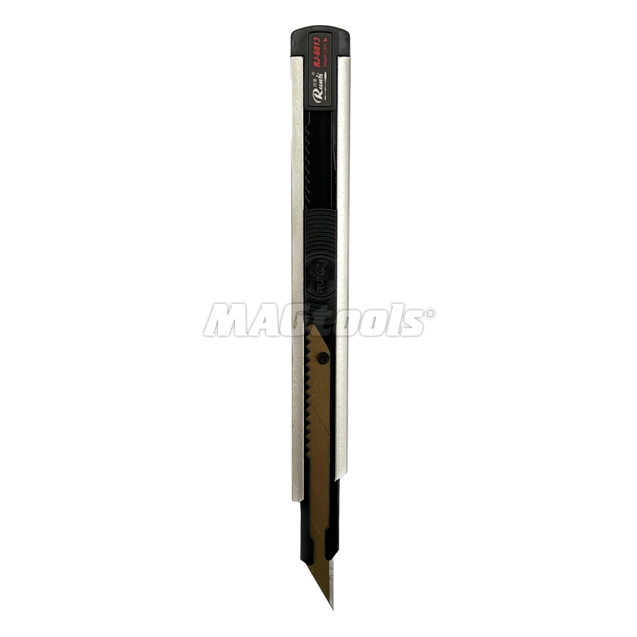Нож RUNJI 9 мм RJ-13 с лезвием 30° — высокоточный инструмент для деликатных работ. Оснащен острым лезвием с отламывающимися сегментами под углом 30°, ширина лезвия 9 mm. Данный нож идеально подходит для аккуратной резки обоев, картона, бумаги, виниловой пленки, оракала и других тонких материалов. Направляющая ножа из прочной нержавеющей стали. Слайдер с фиксатором обеспечивает плавную и надежную регулировку лезвия. Удобная клипса крепится на карман и помогает ломать сегменты. Инструмент компактный, надежный и универсальный.