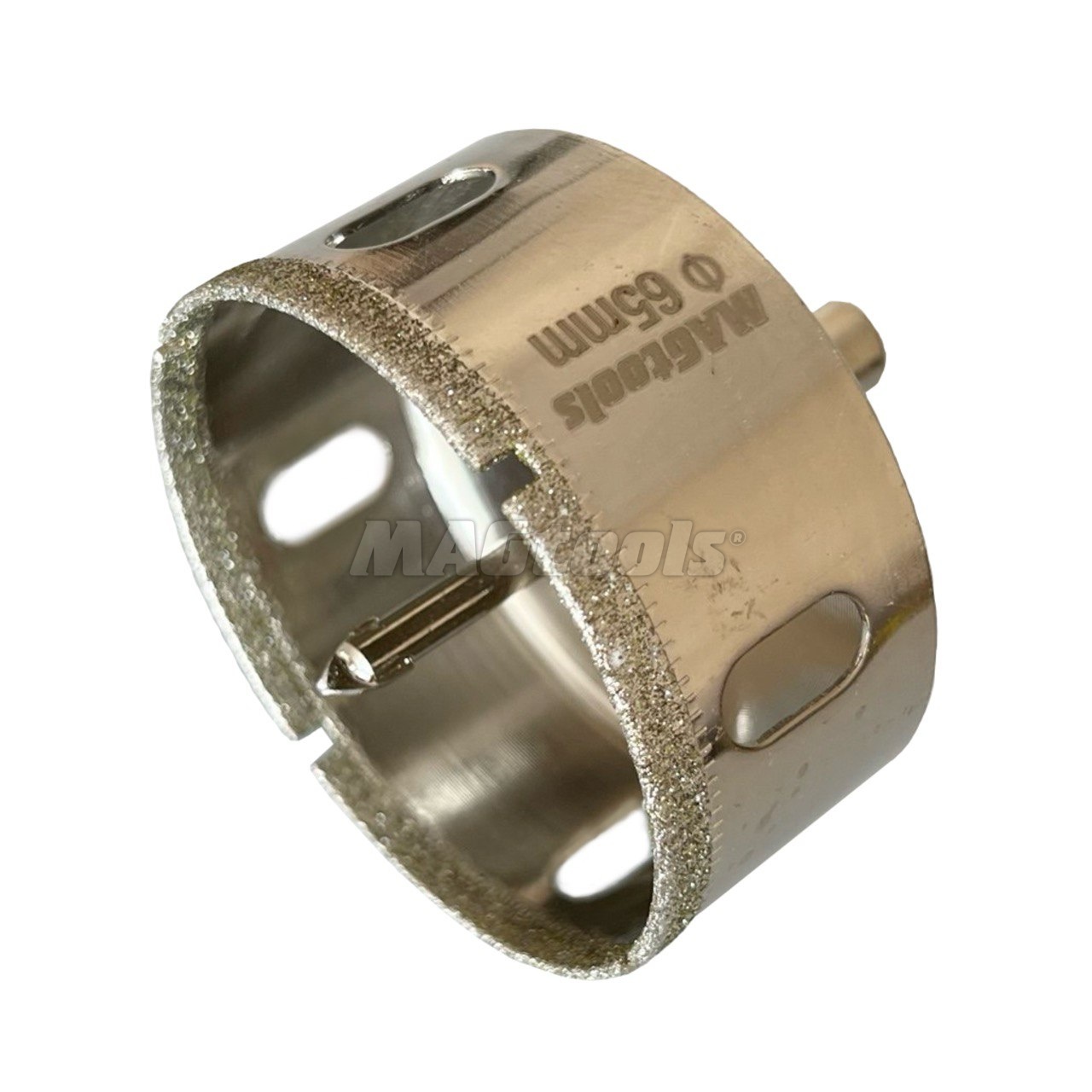 Коронка алмазная для сухого сверления стекла и керамогранита с направляющим сверлом обеспечивает целостность отверстия без трещин и сколов. Центрирующее сверло устраняет отклонения в процессе эксплуатации инструмента. С алмазной коронкой можно работать, используя дрель, шуруповерт либо сверлильный станок.