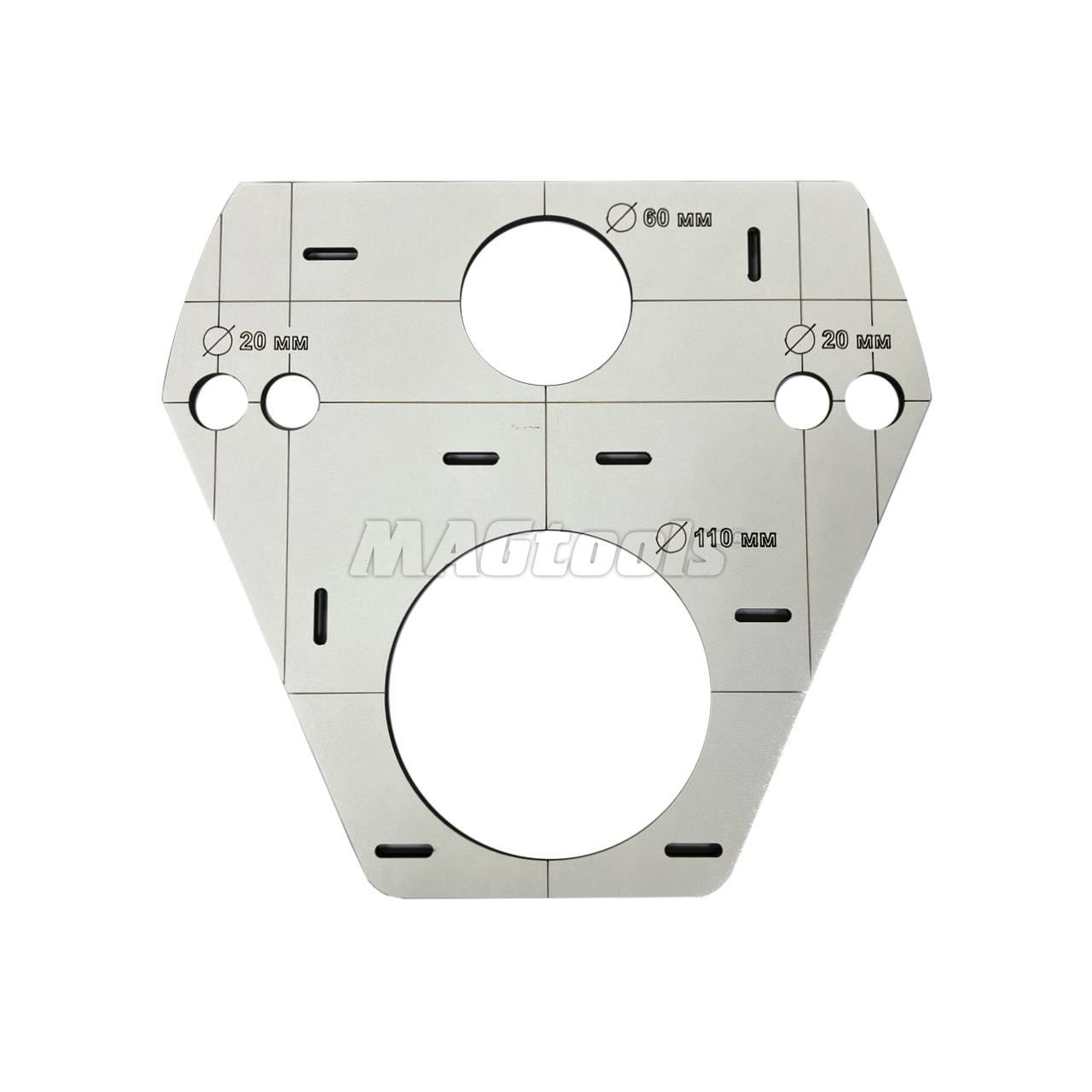 Шаблон для установки унитаза используется для разметки и сверления отверстий при установке подвесных унитазов скрытого монтажа. Изготовлен из крепкого ДВП. Он универсален, так как подходит для большинства систем инсталляций. Шаблон для установки рассчитан для отверстий диаметром 60 мм и 110 мм под саму систему унитаза, а также отверстия диаметром 20 мм для крепления системы. Шаблон содержит подходящую разметку для лазерного уровня, что ускоряет работу.