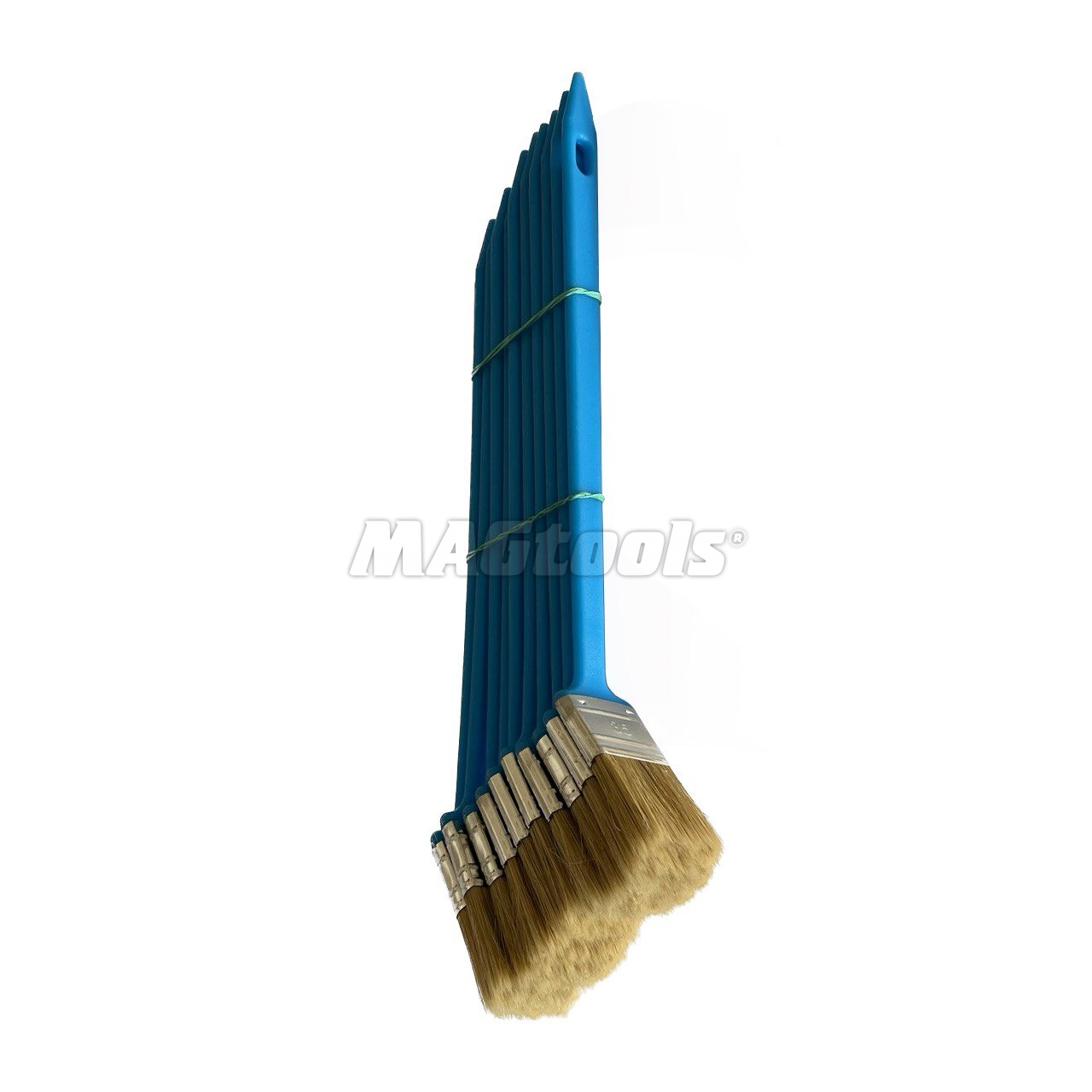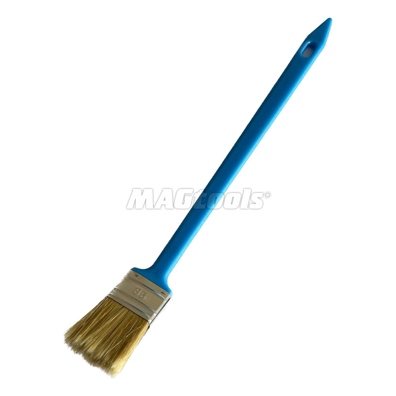 Пензлик для батарей з довгою пластиковою рукояткою та натуральною щетиною для виконання малярних робіт у важкодоступних місцях. Використовується для фарбування опалювальних радіаторів та труб, а також для нанесення масляних фарб та лаків. Ободок пензлика виконаний з нержавіючої сталі - стійкий до ураження та поширення корозії, до дії вологи. Натуральна щетина характеризується стійкістю до агресивних засобів, має хорошу здатність, що вбирає, утримує фарбу і наносить її щільним шаром.