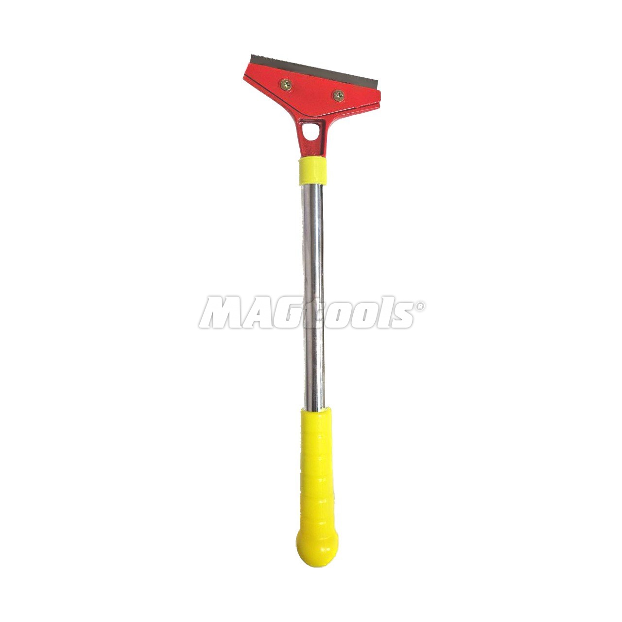 Інструмент має довгу пластикову ручку з міцно закріпленою металевою основою, загальна довжина виробу 300 мм. Змінне лезо 18 мм дозволяє продовжити експлуатацію даного скребка. Товар призначений для очищення поверхонь від старого облицювання та набілу зі скла, стін, стелі, вікон тощо. Скребок легко видаляє шпаклівку зі скла, дерева та металу.